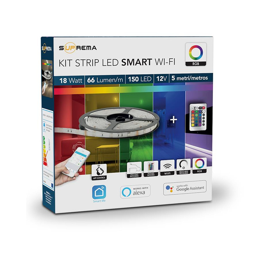 Il dipositivo Suprema può essere controllato utilizzando l'APP SmartLife con il tuo telefonino oppure tramite il suo telecomando. Questo lo rende sempre pilotabile anche in assenza di connessione internet. Pilotare le luci di casa non è mai stato così semplice e sicuro.