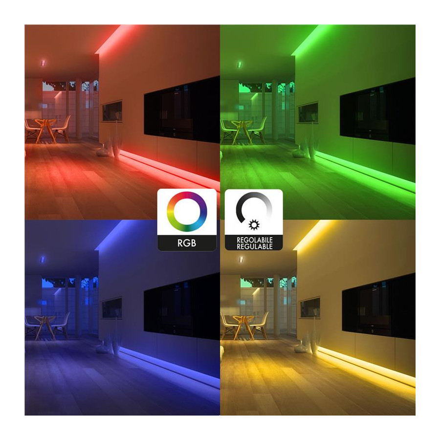 LED RGB indica i LED rossi, blu e verdi. I LED RGB combinano questi tre colori per produrre oltre 16 milioni di tonalità di luce. Miscelando quindi i colori con le diverse intensità e, sovrapponendo quindi un colore sull’altro, si può avere una luce caratterizzata da diverse tonalità che illuminano l’ambiente in modo elegante; facendo un esempio, il viola chiaro è dato dalla miscelazione della luce blu con quella rossa. Le luci LED RGB presentano poi una versatilità incredibile in termini di lighting design. Ad esempio, è possibile impostare il colore della luce in base ai propri stati d'animo o ad occasioni speciali.