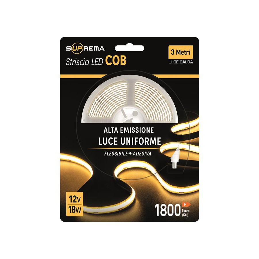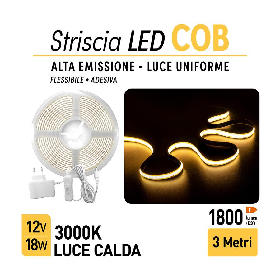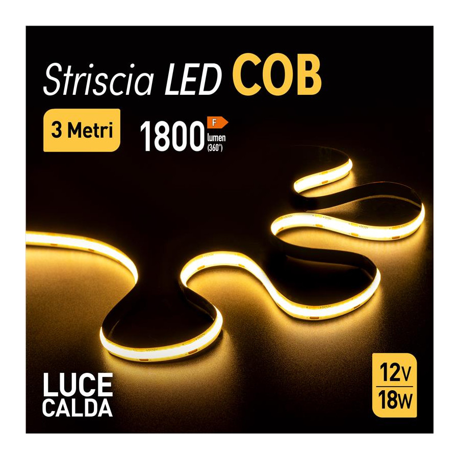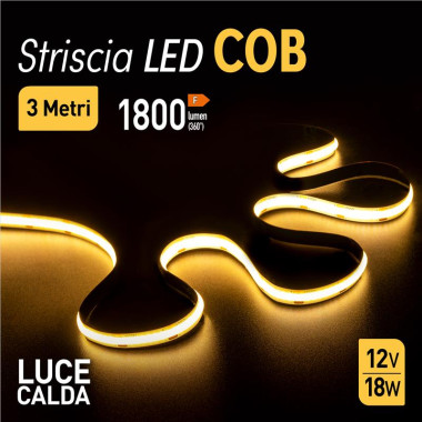 KIT LED STRIP COB 3m 320LEDs/m 18W 1800 Lm 12V LUCE CALDA