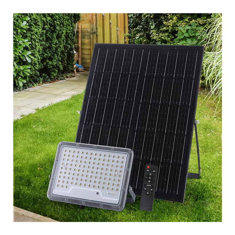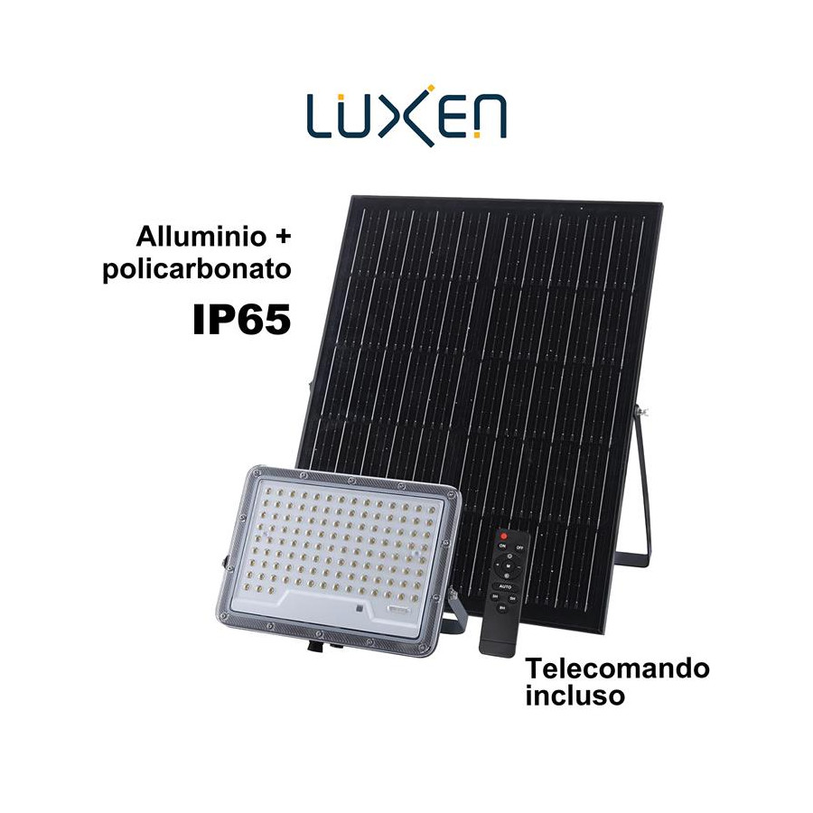 Proiettore solare 1200lm batteria LiFePO4 10Ah pannello Monocristallino 15W con 1m di cavo + 2m di prolunga