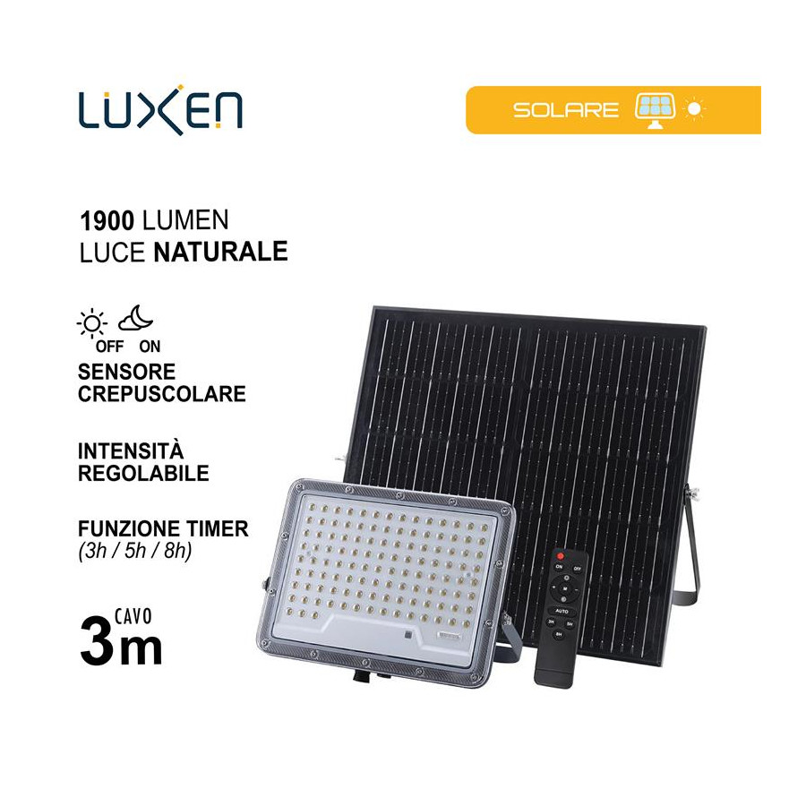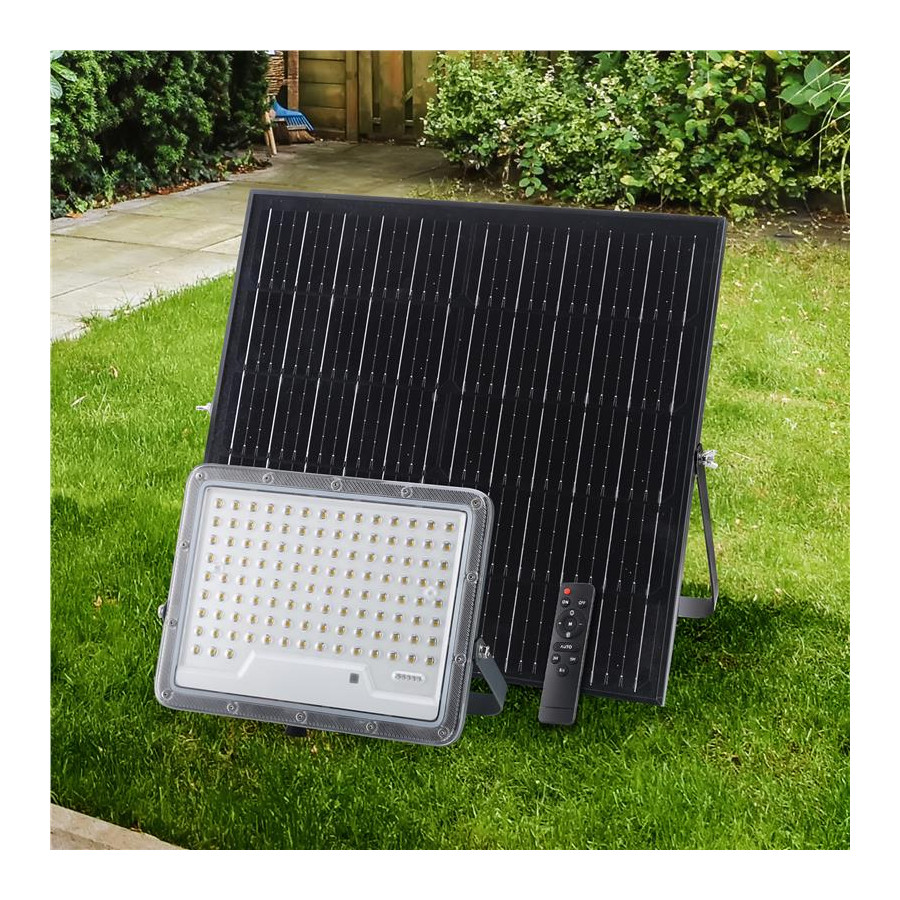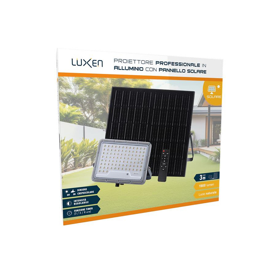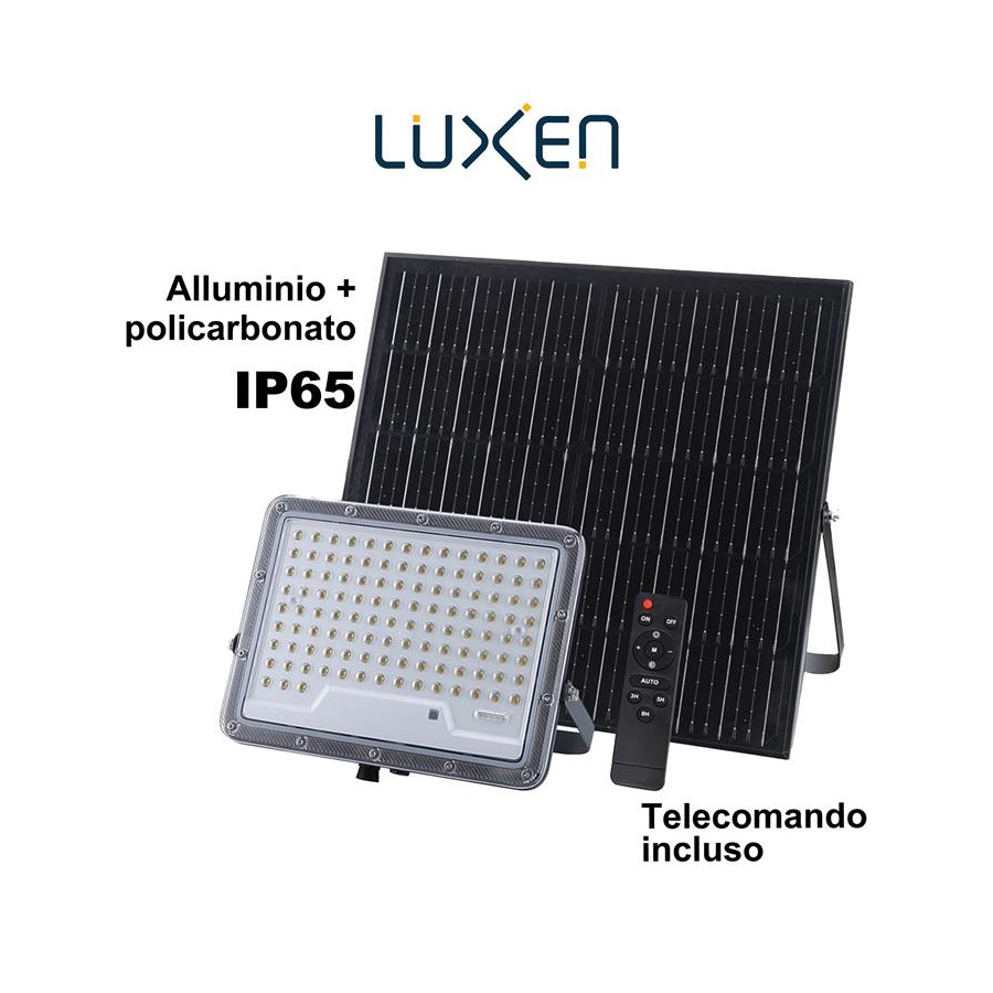 Proiettore solare 1200lm batteria LiFePO4 10Ah pannello Monocristallino 15W con 1m di cavo + 2m di prolunga