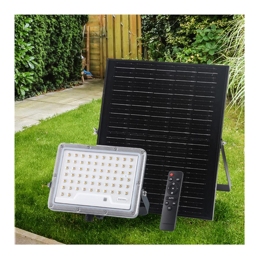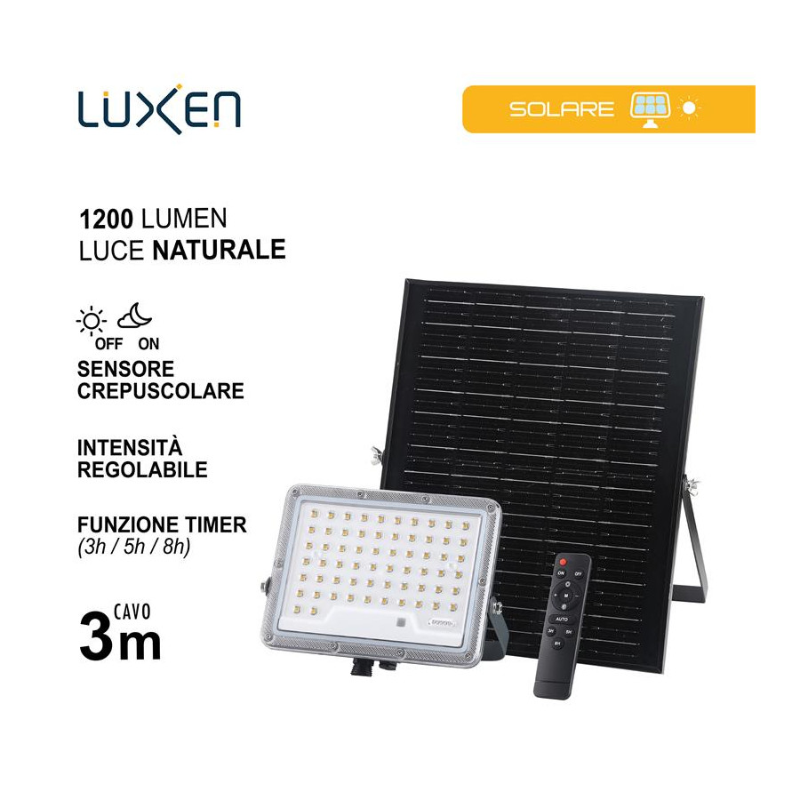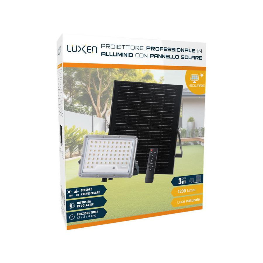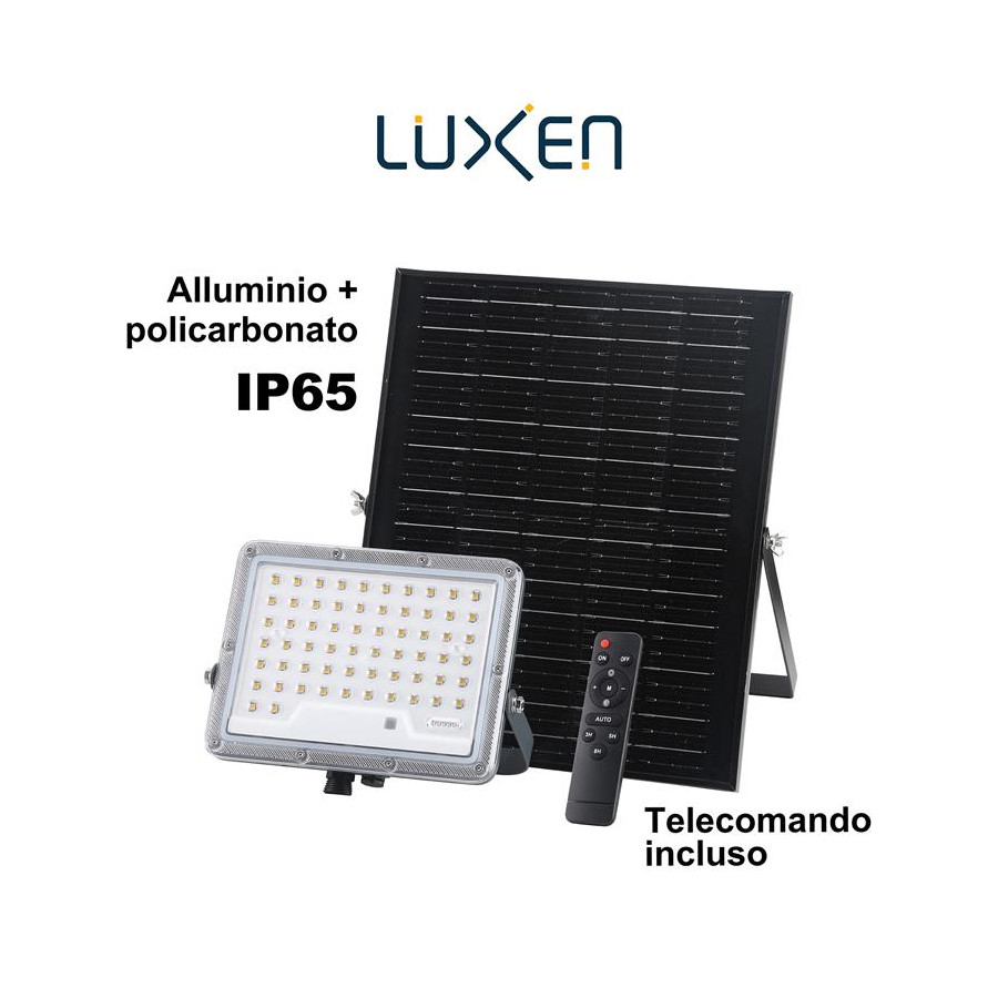 Proiettore solare 1900lm batteria LiFePO4 20Ah pannello Monocristallino 25W con 1m di cavo + 2m di prolunga