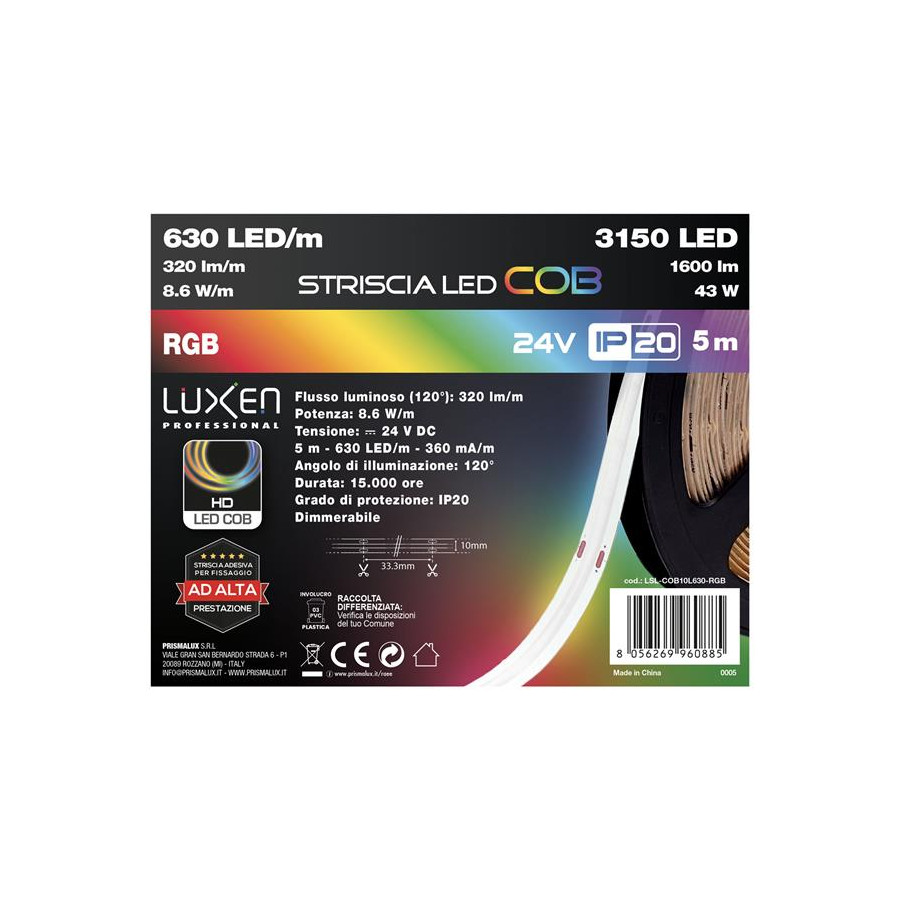 Striscia 5m luce RGB- IP20-630 Chip - HD COB