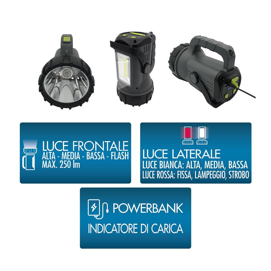 TORCIA DA TESTA RICARICABILE 10W ALLUMINIO e ABS