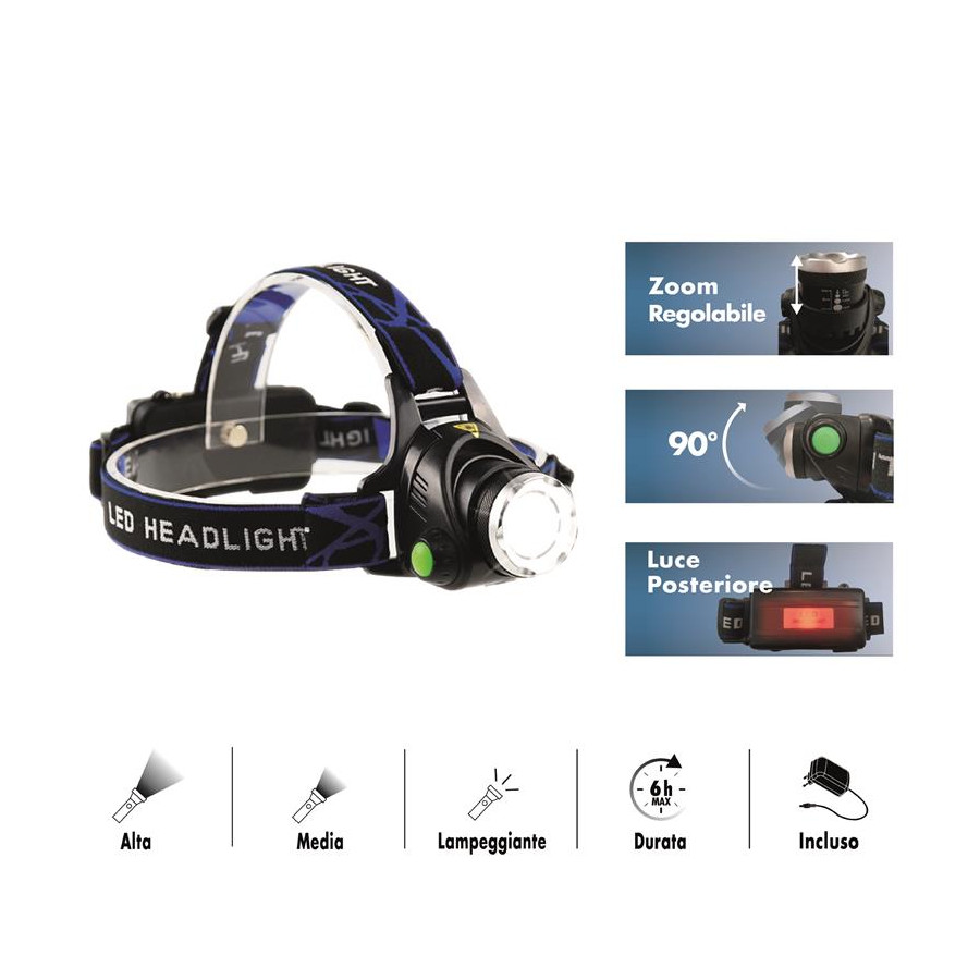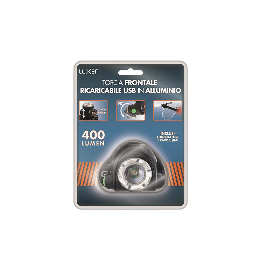 TORCIA DA TESTA RICARICABILE 10W ALLUMINIO e ABS